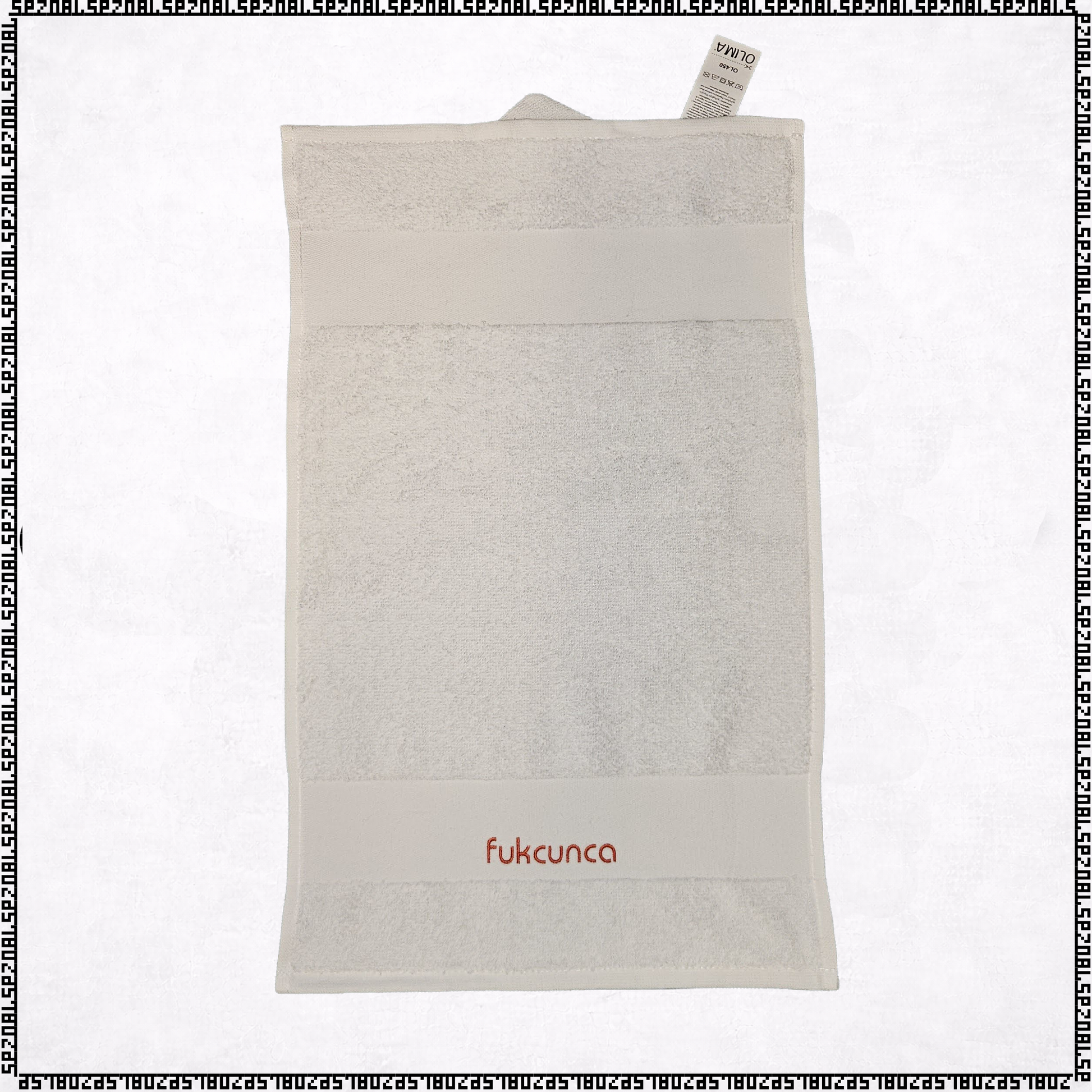 napis "fukcunca" je strojno izvezen na brisačko. da traja doooolgo časa.